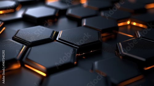 Obraz premium Abstract hexagonal grid, glowing edges, dark surface, futuristic design