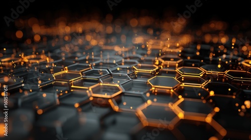 © Lima, Obraz premium Abstract hexagonal grid with glowing particles