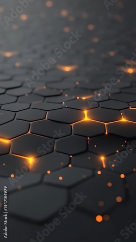 © Polahdesign, Obraz premium Abstract Hexagonal Grid with Luminous Points.