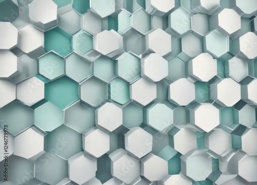 © sasiprapa, Naklejka premium Abstract Hexagonal Pattern A Modern Geometric Design Featuring Interlocking Shapes in Shades of White and Teal