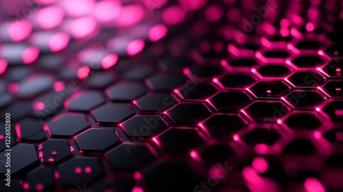 © addymawy, Obraz premium Abstract Hexagonal Pattern Glowing Pink and Black
