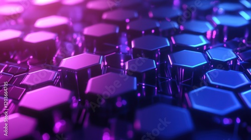 © kenza07, Obraz premium Abstract Hexagonal Pattern: Neon Purple and Blue 3D Render