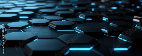 © matoya, Obraz premium Abstract Hexagonal Pattern with Blue Glowing Lines