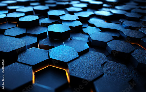 Obraz premium Abstract Hexagonal Pattern with Blue Tones and Orange Accents
