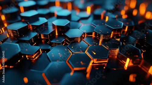 Obraz premium Abstract Hexagonal Pattern with Orange and Blue Lighting