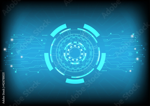 Fototapeta premium Abstract hi-tech background. Future technology digital circuit network and circle shape innovation vector illustration.