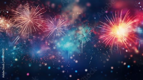 Fototapeta premium Abstract holiday background featuring a dazzling array of colorful fireworks...