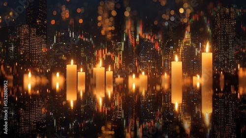 Obraz premium Abstract Holographic Forex Candles Glowing Against City Background