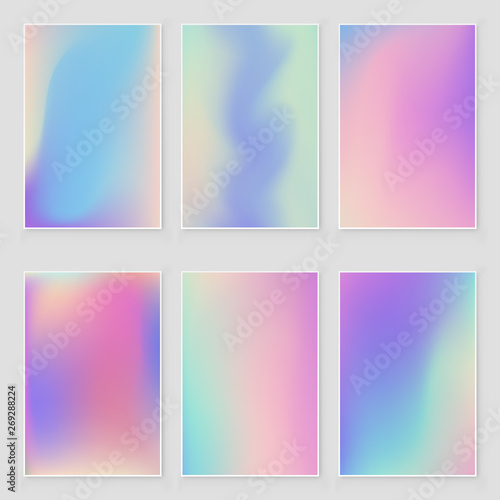 Fototapeta premium Abstract holographic iridescent foil texture set. Modern style