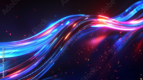 © wellart, Fototapeta premium Abstract holographic iridescent neon curved wave in motion dark background 3d render. Gradient design element for banners, backgrounds