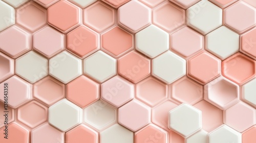 Fototapeta premium Abstract honeycomb pattern in light pink and white
