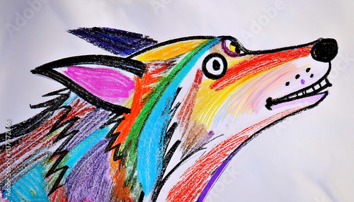 © Portraits, Obraz premium Abstract Howling Wolf: Chaotic Crayon Expression
