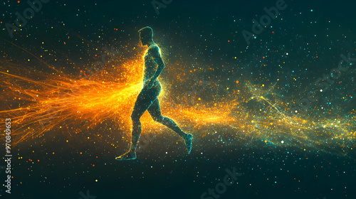 Fototapeta premium Abstract Human Figure Running Through a Trail of Glittering Particles in a...