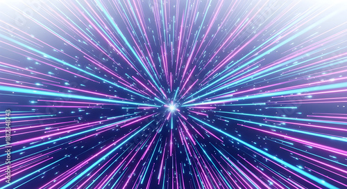 Fototapeta premium Abstract hyper speed motion effect in blue and magenta colors, warp speed,...