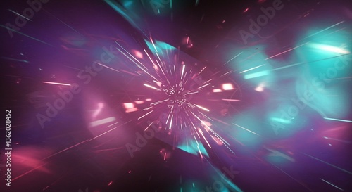 © NguyenHaiPhuong, Fototapeta premium Abstract Hyperlight Speed Tunnel Pink Teal. AI Generated