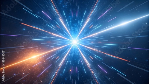 © GROW HIGH, Naklejka premium Abstract hyperspace background with light speed travel and futuristic tunnel effect design concept