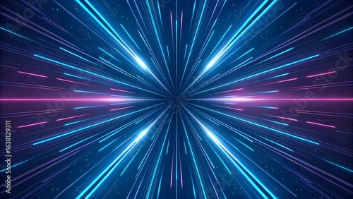 Naklejka premium Abstract Hyperspace Tunnel with Blue and Pink Neon Lights, Futuristic and...