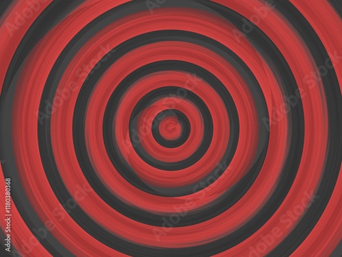 Naklejka premium Abstract hypnotic background with concentric red and black circles, creating...
