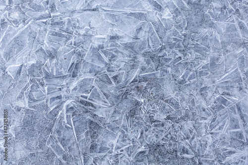 Obraz premium Abstract ice pattern on a frozen river. Background
