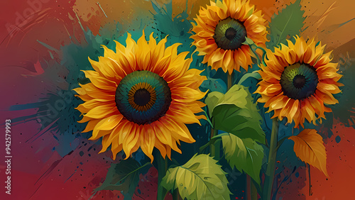 Obraz premium abstract illustration background featuring vibrant sunflowers in a swirling,...