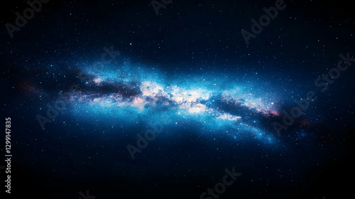 © artzone, Fototapeta premium Abstract Illustration of a Blue and White Galaxy Nebula with Numerous Bright Stars in a Dark Night Sky