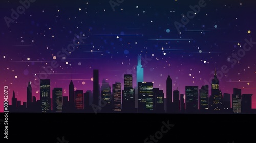 Fototapeta premium abstract illustration of a city skyline silhouette with a starry sky and a gradient background