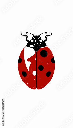 © ILIUSIA, Obraz premium Abstract illustration of a stylized ladybug with distinct black spots and a unique symmetrical design on a plain white background