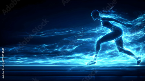 Fototapeta premium Abstract Illustration of a Woman Running in Blue