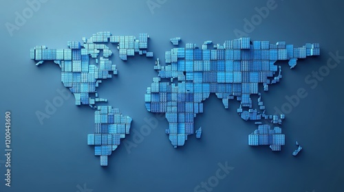Obraz premium Abstract illustration of a world map made from shipping containers, symbolizing interconnected global logistics
