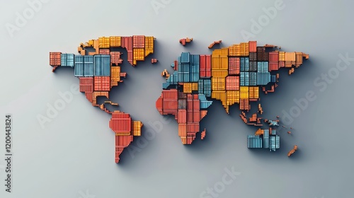 Obraz premium Abstract illustration of a world map made from shipping containers, symbolizing interconnected global logistics