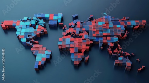 Obraz premium Abstract illustration of a world map made from shipping containers, symbolizing interconnected global logistics