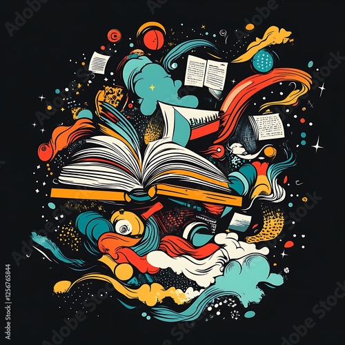 © Indri, Fototapeta premium Abstract illustration of an open book with swirling colors and textures. Suitable for educational or creative themes