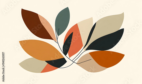 © mbah, Naklejka premium Abstract illustration of colorful leaves arranged artistically on a light background.