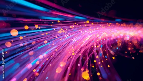 Fototapeta premium Abstract illustration of data flow illuminated lines and particles vibrant colors technology concept