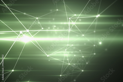 Fototapeta premium Abstract illustration of green glowing network of connections and bright spot...