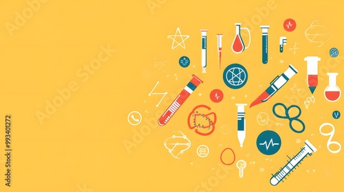 Obraz premium Abstract Illustration of Science and Laboratory Equipment on a Yellow Background
