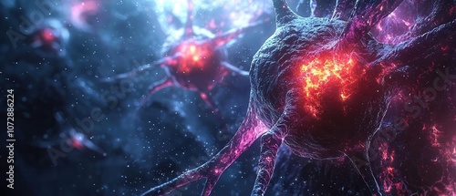Fototapeta premium Abstract illustration of vibrant neural cells in a dynamic, colorful environment