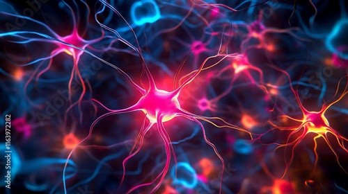 Obraz premium Abstract illustration of vibrant neuron network with glowing structures.