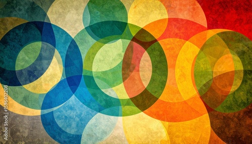 © Stefan Schurr, Obraz premium Abstract illustration of vibrant overlapping circles in a vintage background