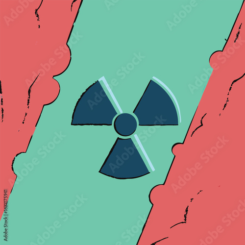 © amrets, Fototapeta premium Abstract illustration with a dark blue radiation warning symbol against a green and red background