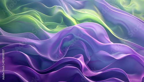 Fototapeta premium Abstract image featuring flowing, colorful waves in shades of purple and green, evoking a sense of movement and fluidity.