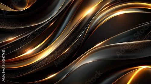 Obraz premium Abstract image featuring smooth, flowing black and gold waves.