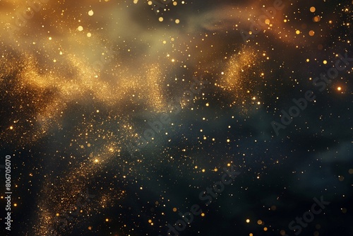 Fototapeta premium Abstract image of a cosmic scene with glittering golden dust particles on a...