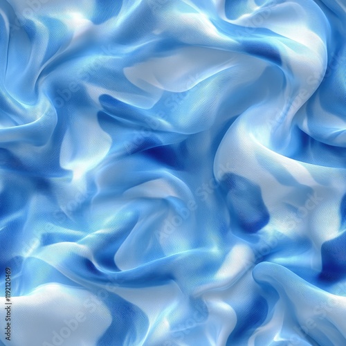 © emzee, Obraz premium Abstract image of blue and white fabric with swirling patterns