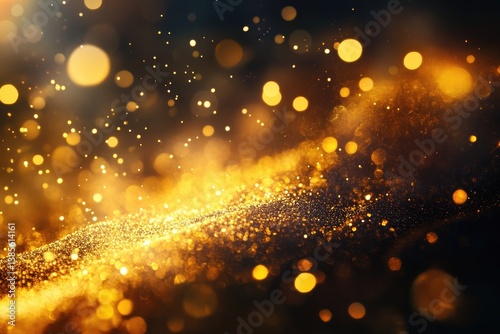 © Nuansaart, Obraz premium Abstract image of bright golden particles and bokeh lights