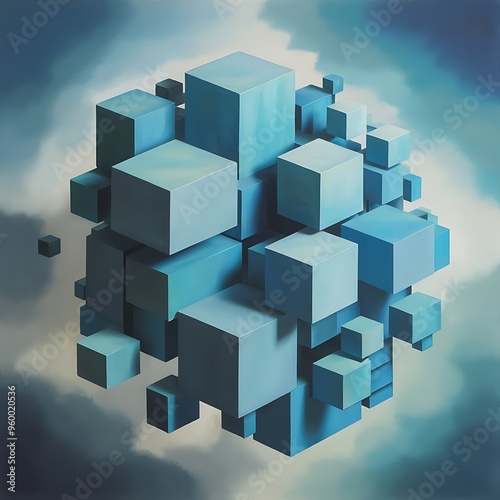 © Kartik, Fototapeta premium Abstract image of cubes background in blue toned
