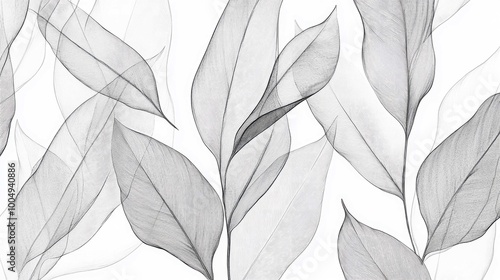 Fototapeta premium Abstract image of delicate, transparent leaves with veins visible against a white background.