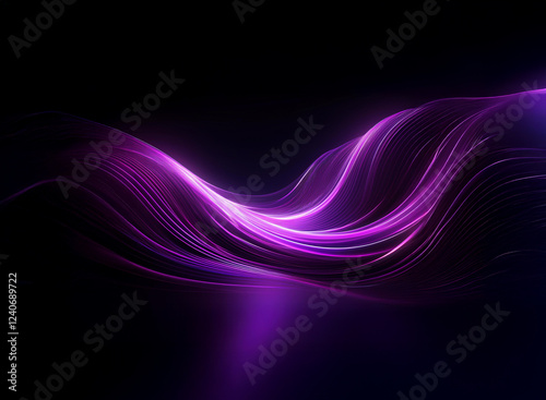 Naklejka premium Abstract image of flowing, luminous purple waves against a black background....