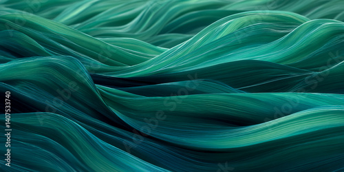© PhotoArtHub, Obraz premium Abstract image of teal fabric waves, creating a flowing, dynamic texture, symbolizing movement, serenity, or fluidity, ideal for design backgrounds