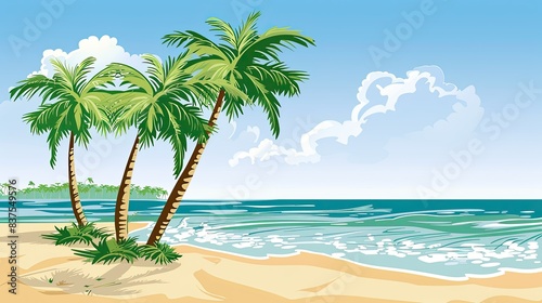 Fototapeta premium Abstract image of tropical palm trees on sandy shoreline. Suitable for nature...